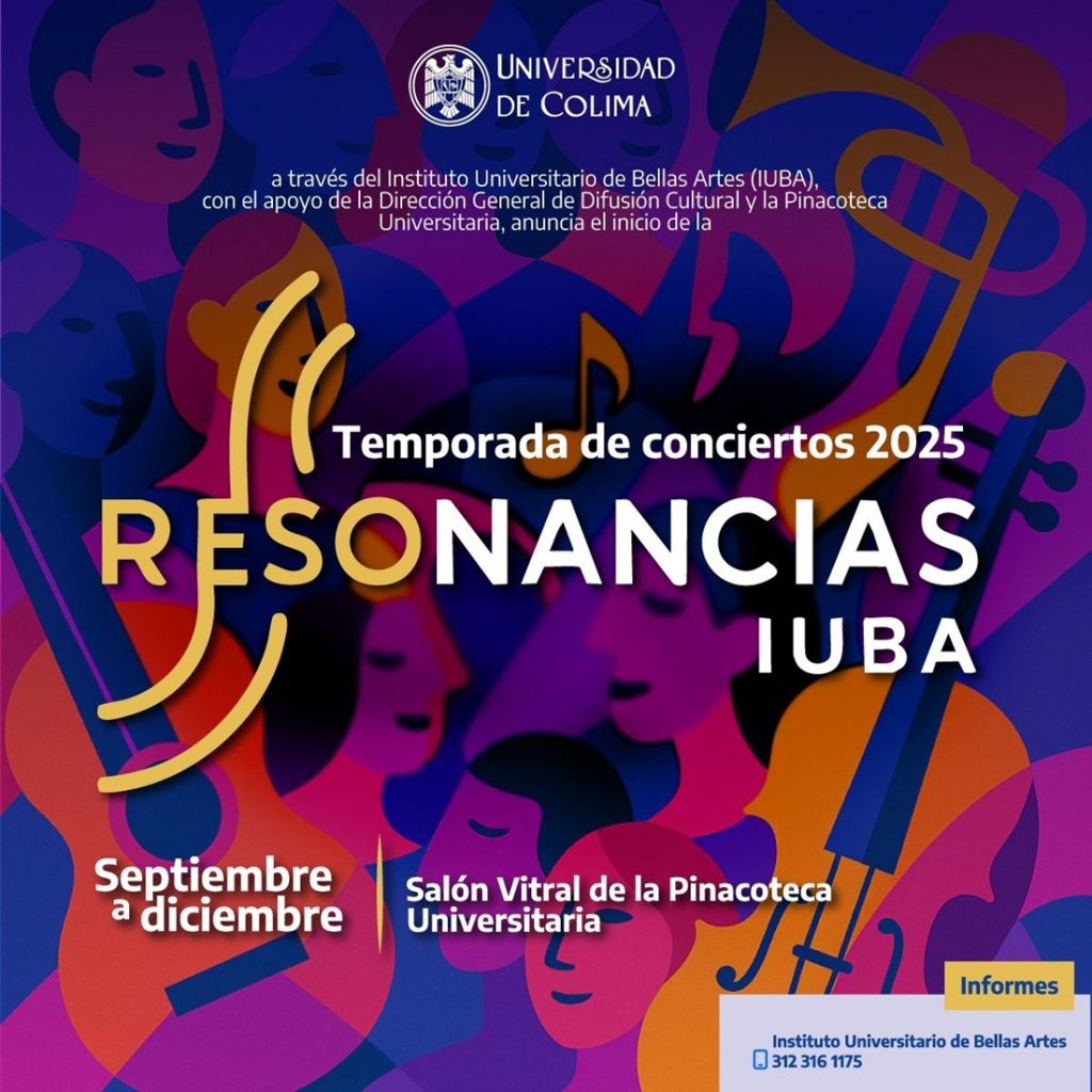 La Universidad de Colima (UdeC), a través del Instituto Universitario de Bellas Artes (IUBA), con el apoyo de la Dirección General de Difusión Cultural y la Pinacoteca Universitaria, anuncia el inicio de la temporada 2025 de “Resonancias IUBA”. Éste es un proyecto artístico que busca enriquecer la vida cultural del estado mediante conciertos de alto nivel.