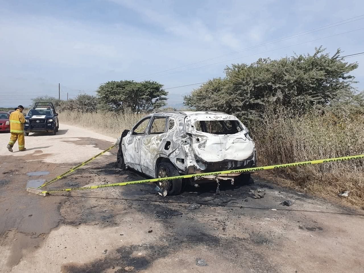 El auto en el que se trasladaba el jefe de Unidad de Tramitación Común en la Región “D”, que abarca Ocampo, San Felipe, Dolores Hidalgo y San Diego de la Unión, fue incendiado después del ataque.