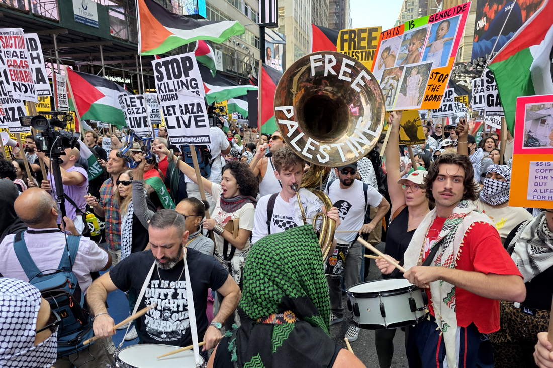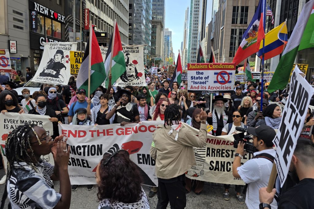 Unas 2 mil personas marcharon en Nueva York contra la presencia del primer ministro israelí, Benjamín Netanyahu, en la Asamblea General de la ONU y contra la guerra en Gaza.