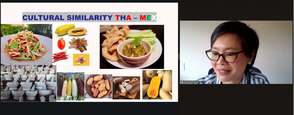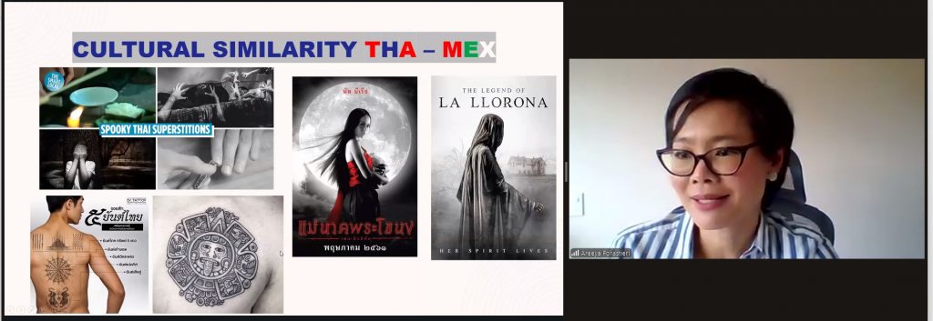 Durante su intervención, Areeya Prajunpanich ofreció un panorama de la cultura tailandesa, resaltando valores sociales, espirituales y familiares compartidos con países como México, desde la gastronomía -con ingredientes comunes como maíz, papaya y cacahuate- hasta leyendas y creencias populares, como las historias de fantasmas que en México evocan a “La Llorona” y en Tailandia a la figura de “Mae Nak”.