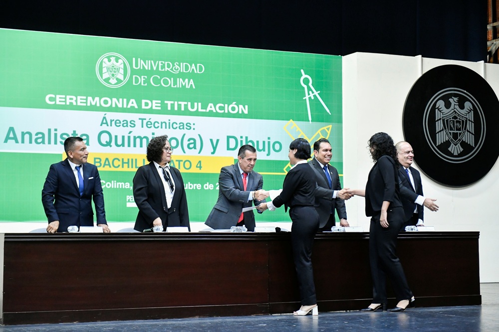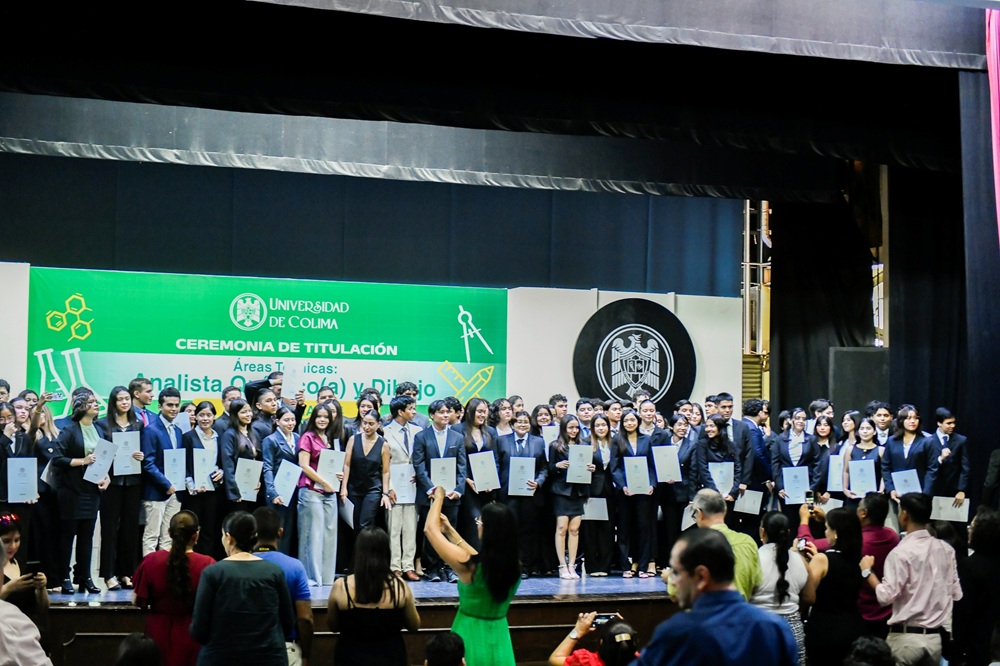 En una ceremonia académica realizada en el Paraninfo Universitario, 148 egresadas y egresados del Bachillerato 4 de la Universidad de Colima, ubicado en Villa de Álvarez, recibieron su certificado como Técnicos en Dibujo y Técnicos Analistas Químicos, marcando un récord histórico en el plantel.