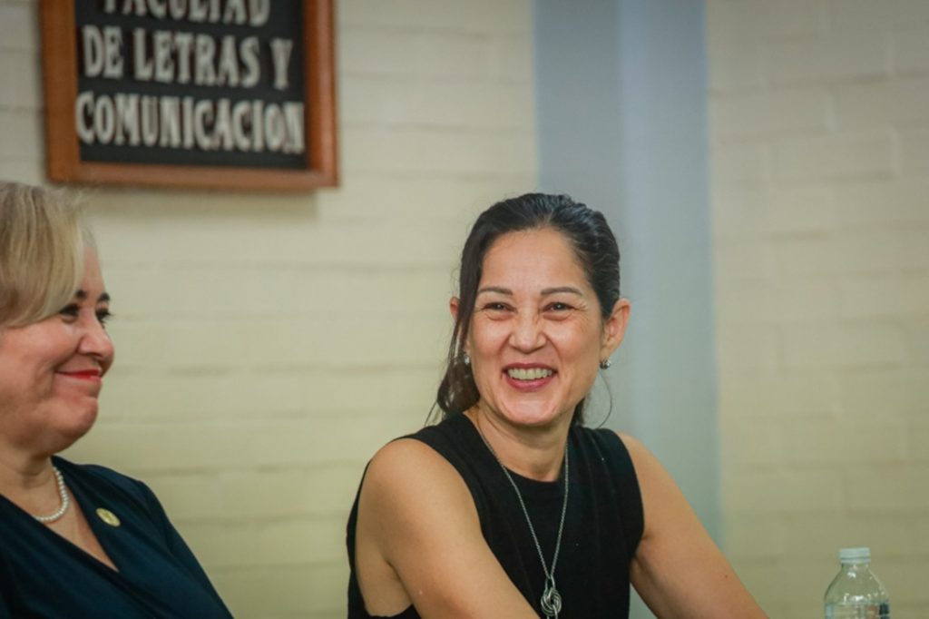 En su mensaje, el Rector felicitó y agradeció el trabajo de la doctora Krishna Naranjo Zavala, directora saliente. “Agradezco tu extraordinario trabajo al frente de la Facultad de Letras y Comunicación; enfrentaste retos y desafíos importantes y lo hiciste muy bien. Quiero felicitarte públicamente por eso”.