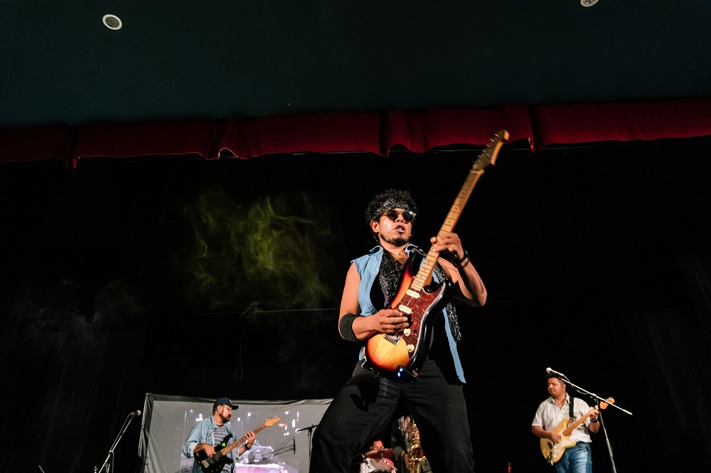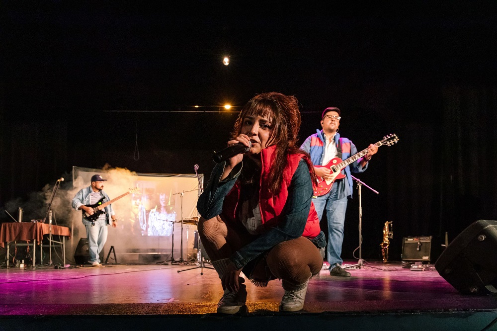 La agrupación, que integran Carlos Flores en el bajo, Sergio Uribe en la guitarra, Mario Sandoval en la batería, Julieta Macías en la voz y Erika Flores en la dirección visual del espectáculo, contó además con la participación especial de Jorge Macías, Cielo Pérez y Leonardo Cortez. La velada continuó con temas como “Hijo de la luna”, de Mecano; “Mátenme porque me muero”, de Caifanes; “Livin’ on a Prayer”, de Bon Jovi y cerró con un popurrí de la agrupación británica Queen y la canción “Zombie”, de The Cranberries.
