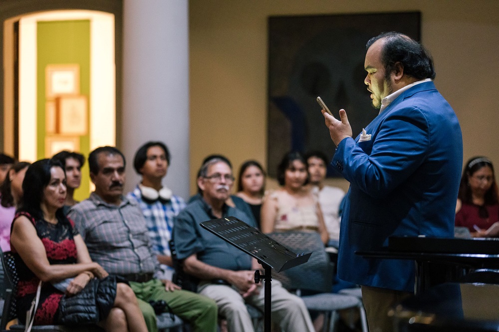 El barítono mexicano José Valdepeña presentó en la Pinacoteca Universitaria “Entre el Ara y el Escenario. Transversalidad y sustentación del canto occidental”, como parte del programa “Sonidos y silencios” que organiza la Dirección General de Difusión Cultural de la Universidad de Colima.
