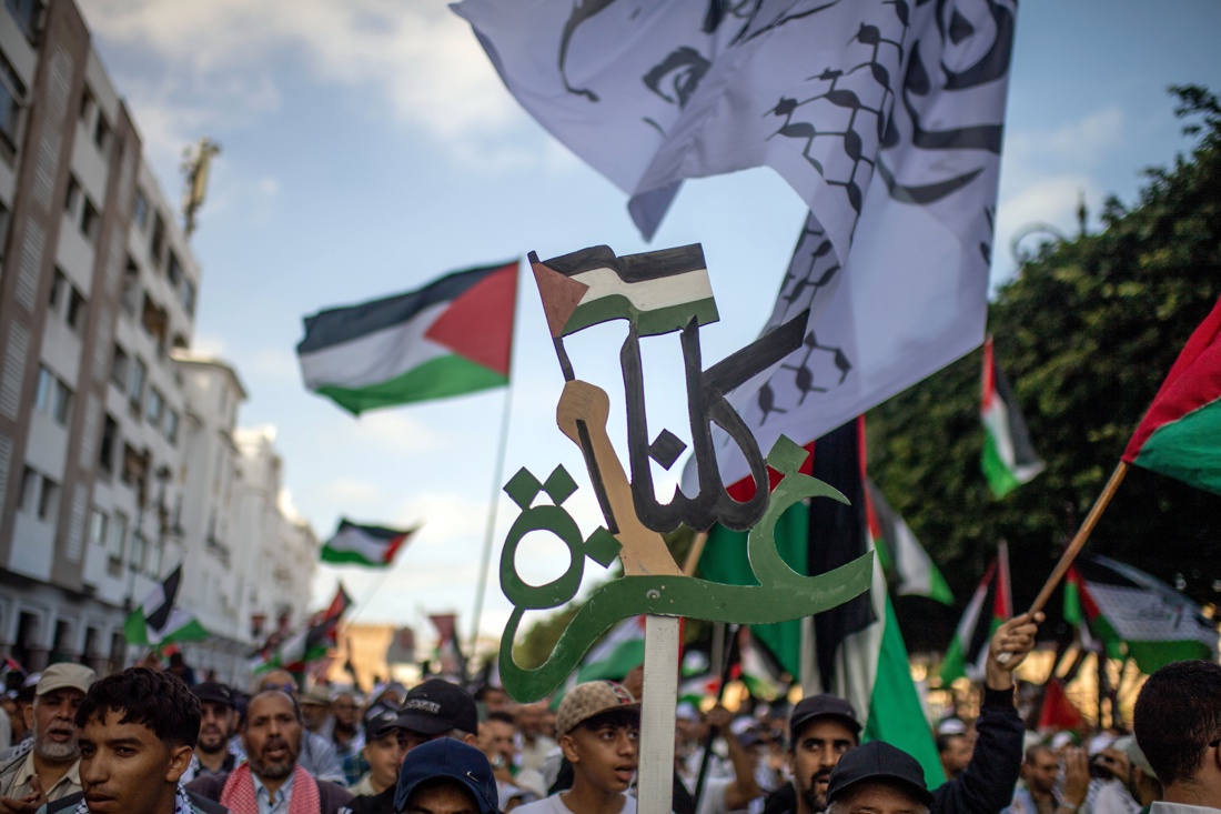 La protesta fue convocada por el Grupo de Acción Nacional por Palestina, que agrupa a organizaciones islamistas, nacionalistas y de izquierda, bajo el lema “Resistencia hasta la liberación de Palestina y la caída de la normalización con el régimen sionista”.