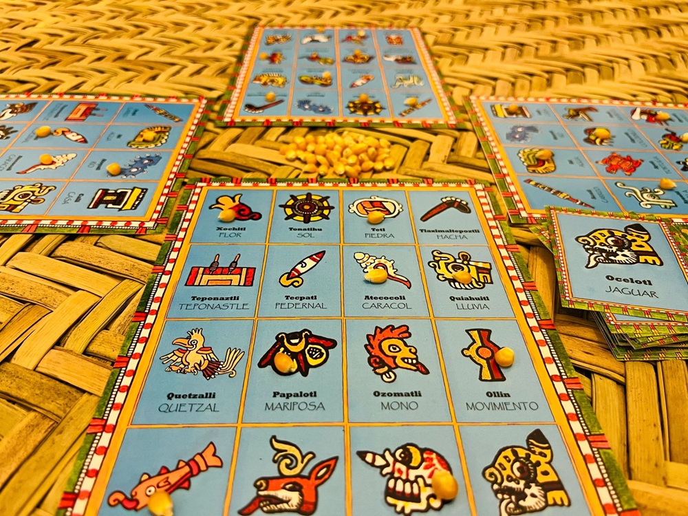 Además, existen versiones físicas del juego, hechas en cartoncillo, con plantillas y cartas, que también pueden incluir elementos como maíces para jugar. En Colima, se ha impulsado su uso como una herramienta cultural y educativa para promover el conocimiento y la difusión del náhuatl, especialmente en contextos escolares y comunitarios.