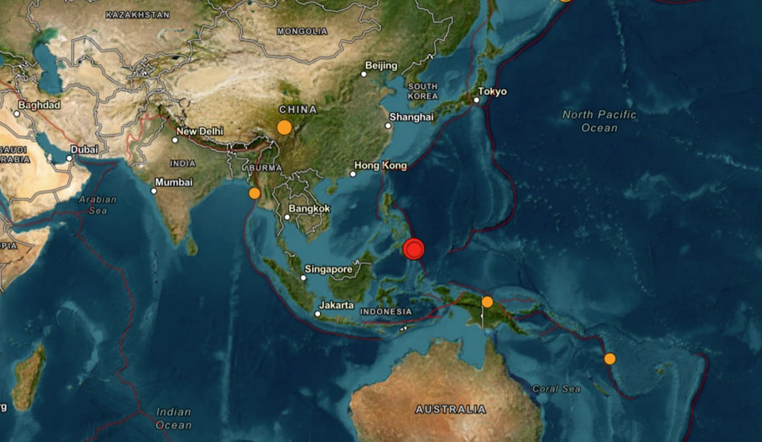 El Centro de Alerta de Tsunamis del Pacífico alertó del posible impacto en costas del sur de Filipinas de olas de entre 1 y 3 metros con el aviso de tsunami activado por un terremoto de magnitud 7.4 en la isla de Mindanao.