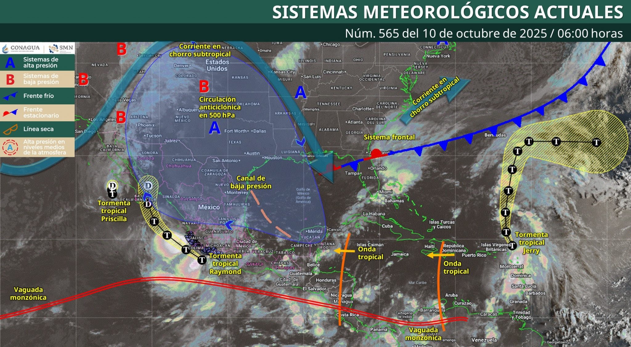 El SMN pidió a la población colimense mantenerse informada a través de los canales oficiales y atender las recomendaciones emitidas por Protección Civil, ante el riesgo de oleaje elevado y posibles efectos derivados del paso de Raymond, así como por los remanentes de Priscilla, que continúa degradándose frente a Baja California Sur.