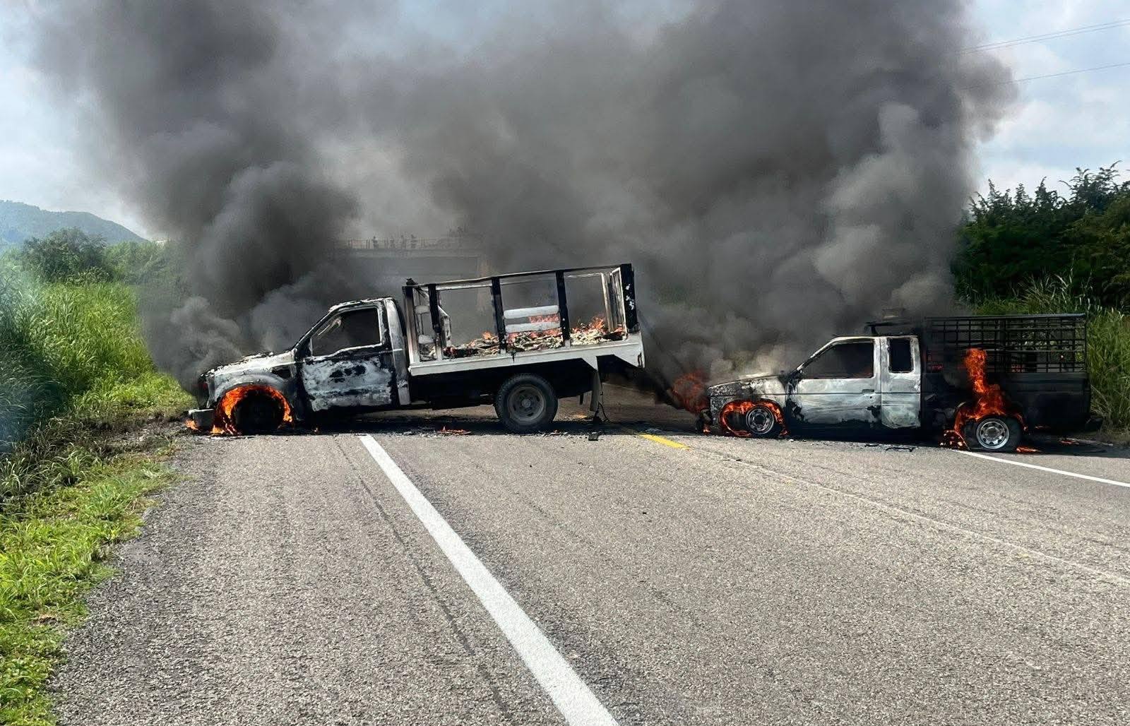 Decenas de autos particulares y vehículos de carga, entre ellos 2 pipas, fueron incendiados y colocados por grupos armados sobre carreteras federales en las regiones Costa y Frailesca de Chiapas.