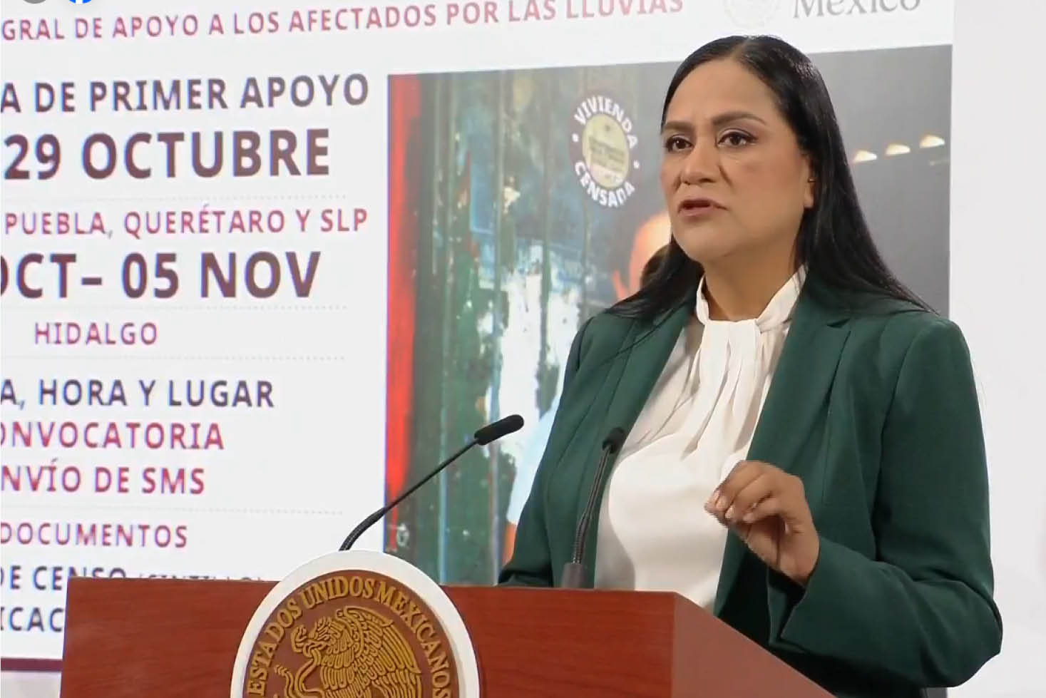 Ariadna Montiel Reyes, secretaria de Bienestar, informó que a partir de este miércoles se entregará el primer apoyo de 20 mil pesos, para todos los damnificados por las fuertes lluvias en Veracruz, Hidalgo, Puebla, Querétaro y San Luis Potosí.
