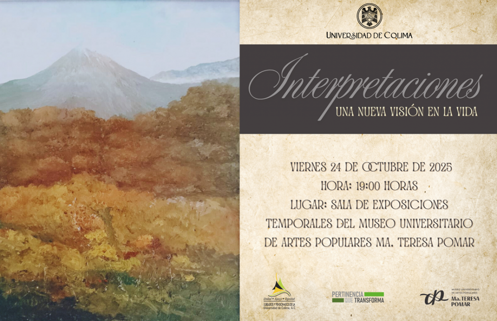 En el marco del 12 aniversario fundacional de la Asociación de Jubilados y Pensionados de la Universidad de Colima (UdeC), este 24 de octubre se inaugurará la exposición temporal “Interpretaciones: una nueva forma de ver la vida”, en la Sala de Exposiciones Temporales del Museo Universitario de Artes Populares (MUAP) “María Teresa Pomar”, a las 7 de la tarde, en el edificio del IUBA.