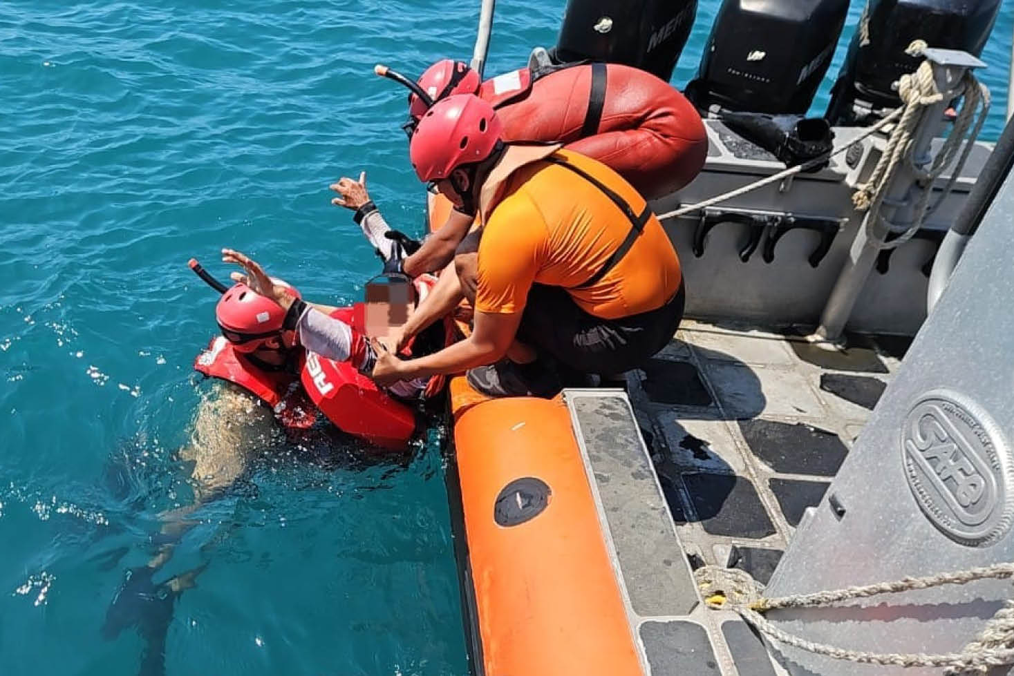 De inmediato, personal naval se desplazó al área señalada y, tras implementar un patrón de búsqueda sobre la línea costera, localizaron al afectado sobre unas rocas cercanas al mar. Dos nadadores de rescate se lanzaron al agua para asegurar al hombre, quien presentaba una lesión leve en la rodilla izquierda y signos de deshidratación.