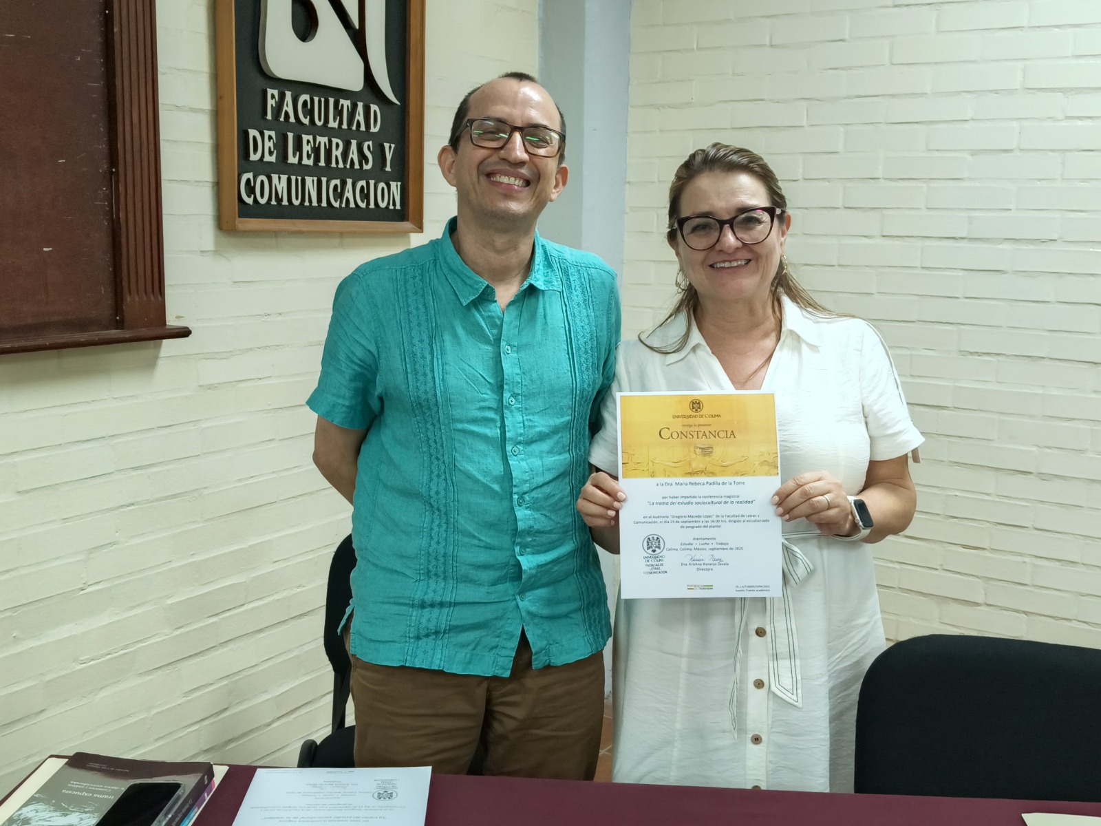 Finalmente, la Coordinación del programa de Doctorado en Estudios Socioculturales sobre las Desigualdades le entregó una constancia por su participación como conferencista magistral. La académica expresó su satisfacción por regresar a la Universidad de Colima, institución que, dijo, aprecia especialmente y a la que siempre le gusta visitar.