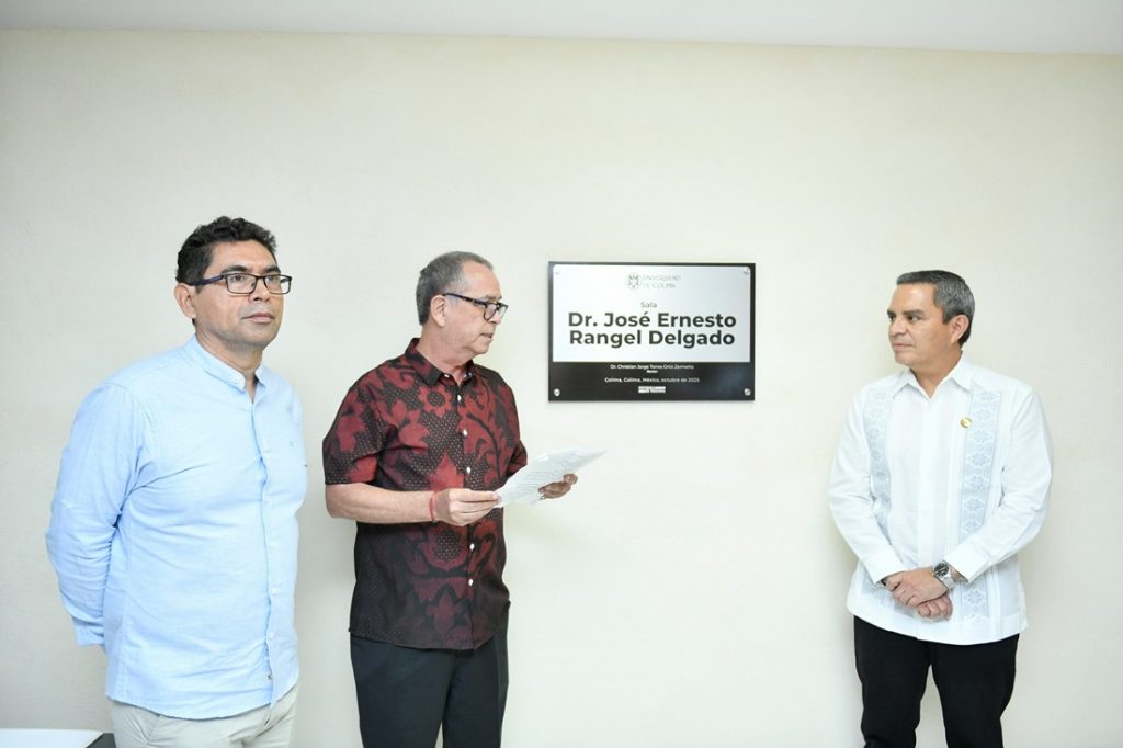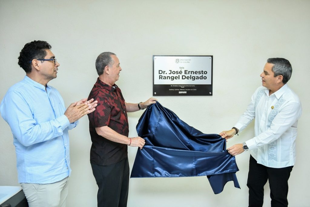 Finalmente, develaron la placa en la sala de juntas de la CUEICP-CEAPEC, que llevará el nombre de José Ernesto Rangel Delgado, pionero en las investigaciones sobre la Cuenca del Pacífico en el estado, la región y el país.