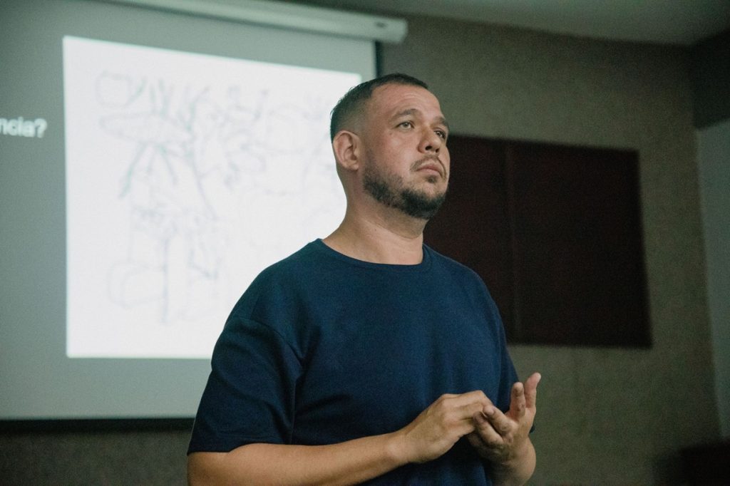 Por su parte, el maestro Heliodoro Santos, artista y docente de la Universidad de Colima, impartió la conferencia “Arte e Inteligencia Artificial”, donde abordó la transformación del arte ante los avances tecnológicos. Invitó a las y los asistentes a cuestionarse qué es el arte, qué significa lo artificial y cómo la tecnología interviene en los procesos creativos.