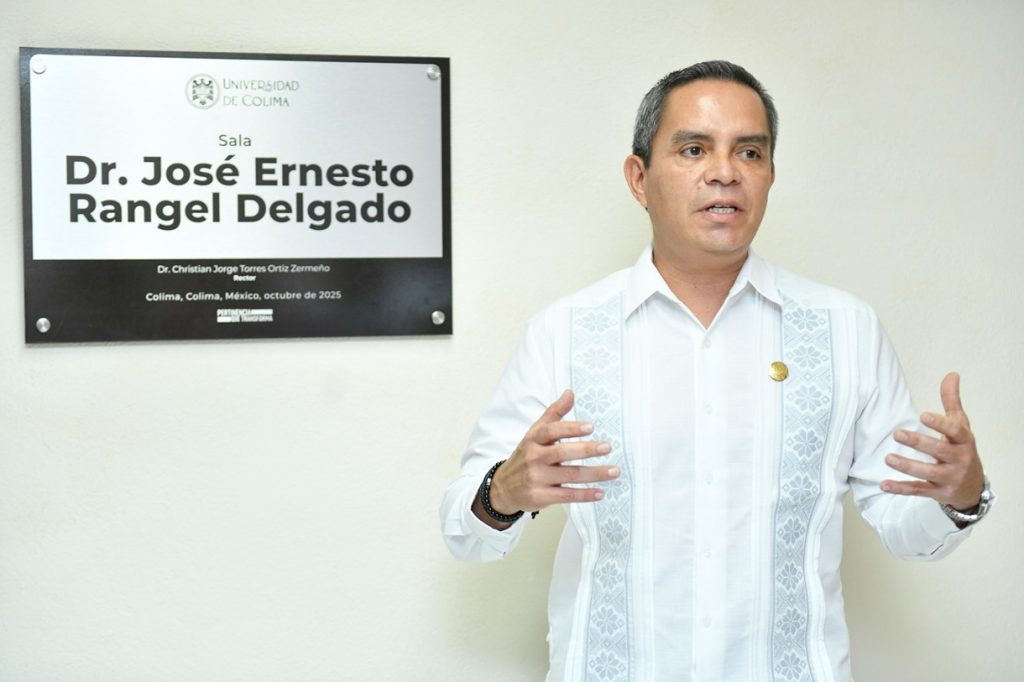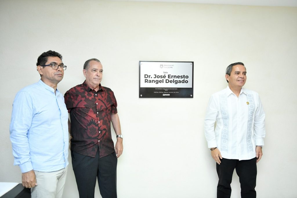 Esta semana, en la Sala de juntas del Centro Universitario de Investigaciones y Estudios sobre la Cuenca del Pacífico (CUEICP-CEAPEC), el Rector de la Universidad de Colima, Christian Jorge Torres Ortiz Zermeño develó una placa que lleva inscrito el nombre de José Ernesto Rangel Delgado, quien a lo largo de su vida académica contribuyó no sólo a la formación de estudiantes y a la investigación sobre las economías de la Cuenca del Pacifico, sino también al trabajo administrativo.
