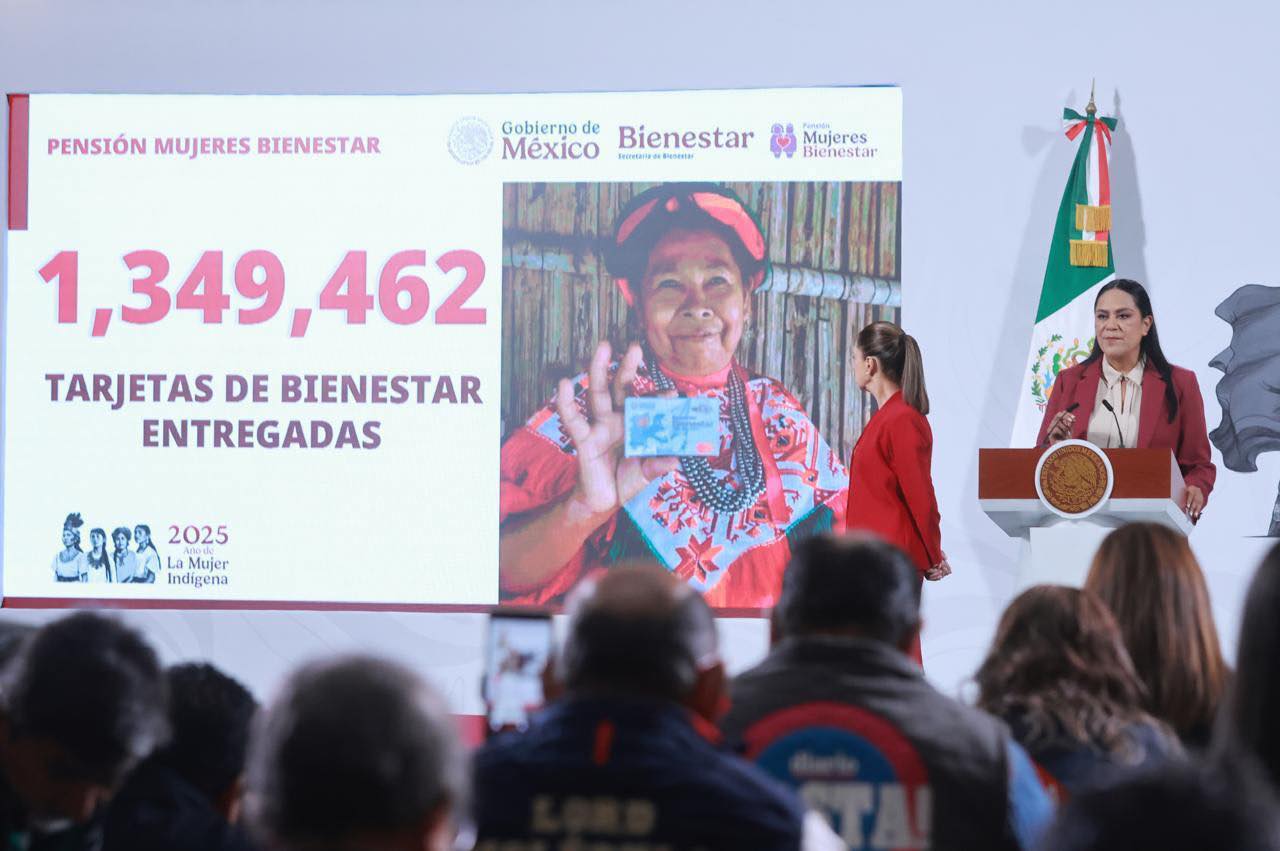 En la conferencia matutina de la Presidenta de México, Claudia Sheinbaum Pardo, la secretaria de Bienestar, Ariadna Montiel Reyes, informó que al momento se han entregado un millón 349 mil 462 tarjetas de la Pensión Mujeres Bienestar a mexicanas entre 60 y 64 años que recibirán un apoyo bimestral de 3 mil pesos.