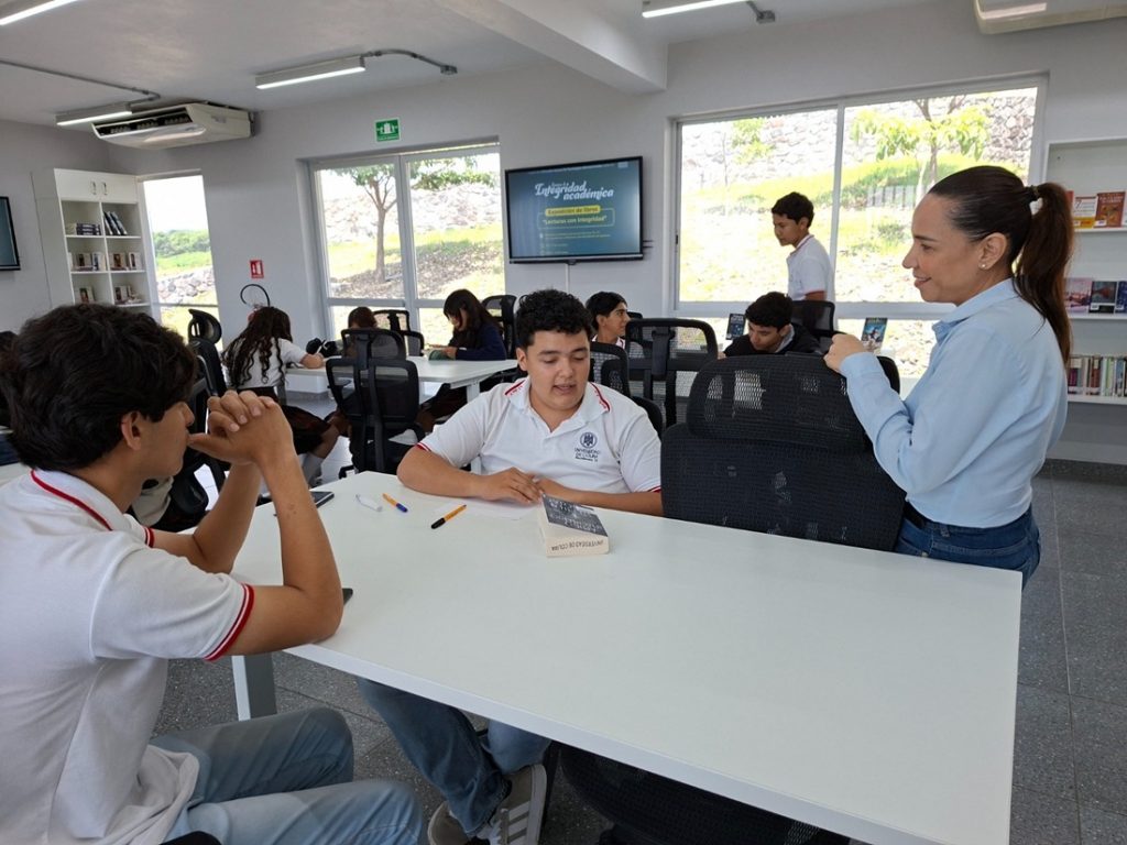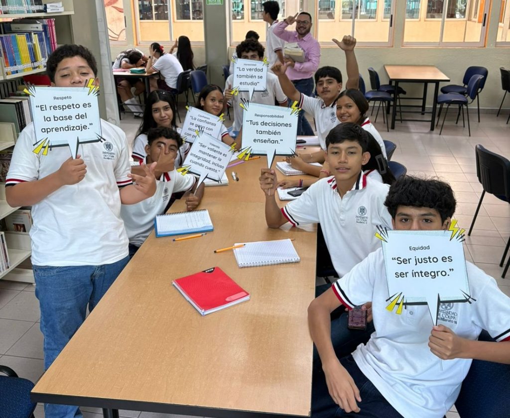 En la Biblioteca Inteligente de los bachilleratos 12 y 13 de Cuauhtémoc y en la biblioteca del bachillerato de Quesería, se presentaron el mural de compromisos “Mi huella de integridad”, la exposición de libros “Lecturas con integridad” y las cápsulas informativas “Voces por la integridad”.