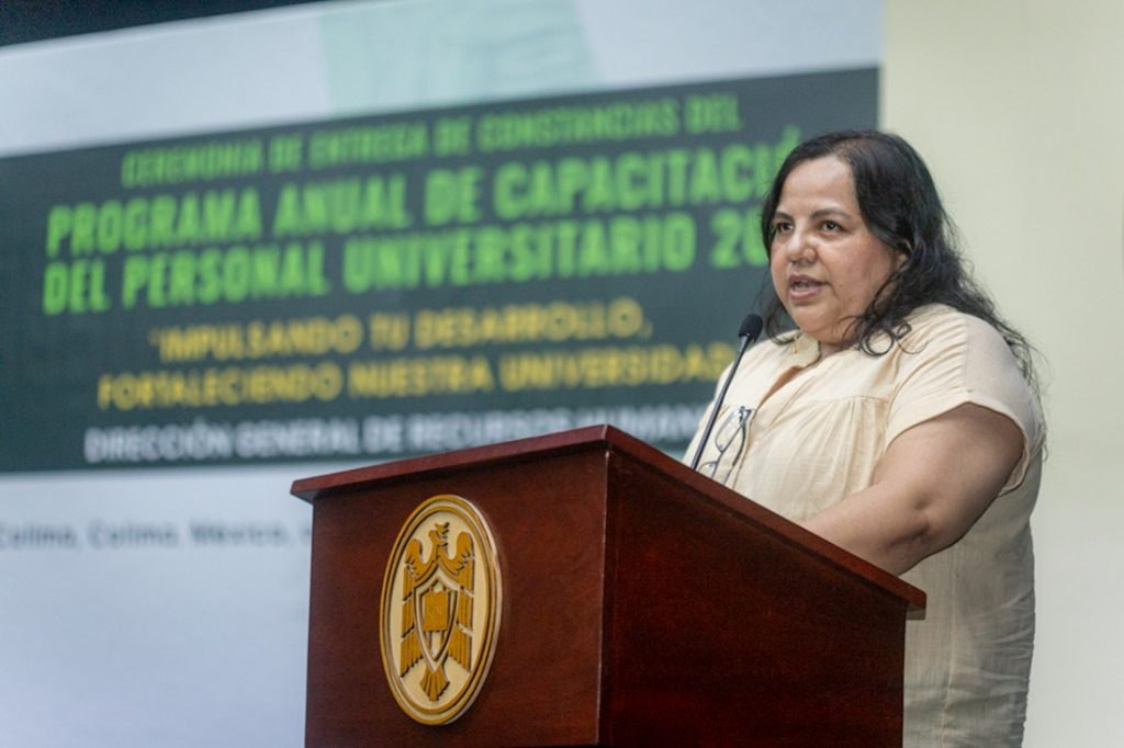 En su turno al micrófono, Priscilia Álvarez, directora de Recursos Humanos, señaló que esta entrega de constancias “es un esfuerzo colectivo que reafirma el compromiso institucional con el desarrollo personal y profesional de quienes conformamos esta comunidad universitaria. Este año ofrecimos una capacitación integrada desde una visión institucional basada en un diagnóstico de necesidades específicas de cada grupo laboral y planeado con la colaboración de instancias responsables de los procesos”.