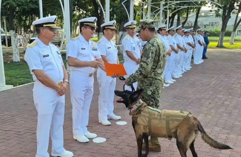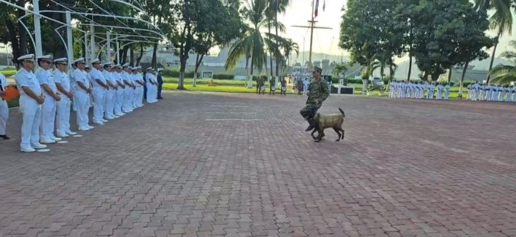 El acto se llevó a cabo en las instalaciones de la Sexta Región Naval, donde Almirantes, Capitanes, Oficiales, Clases y Marinería despidieron a “Hans”, un Pastor Belga Malinois especializado en la detección de narcóticos, divisas, armas de fuego y drogas.