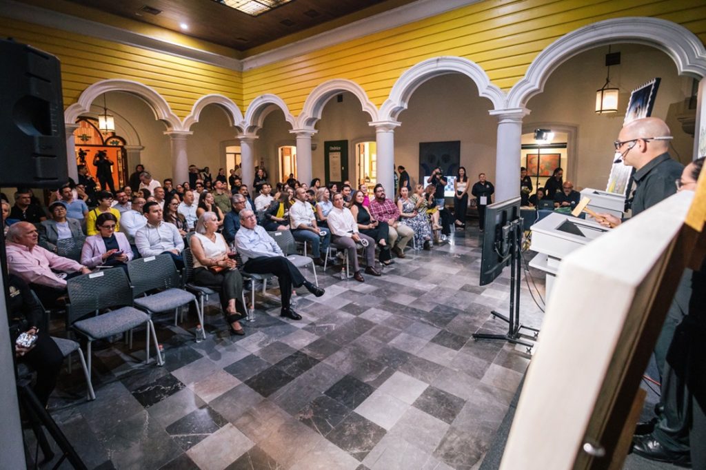 Alfonso Cabrera Macedo, director de la Facultad de Arquitectura y Diseño y artista plástico, fue el curador de la obra; y Mirna Bonós Rodríguez, encargada de comunicación de la Dirección General de Museos y Acervo Cultural, fue la martillera de la subasta.