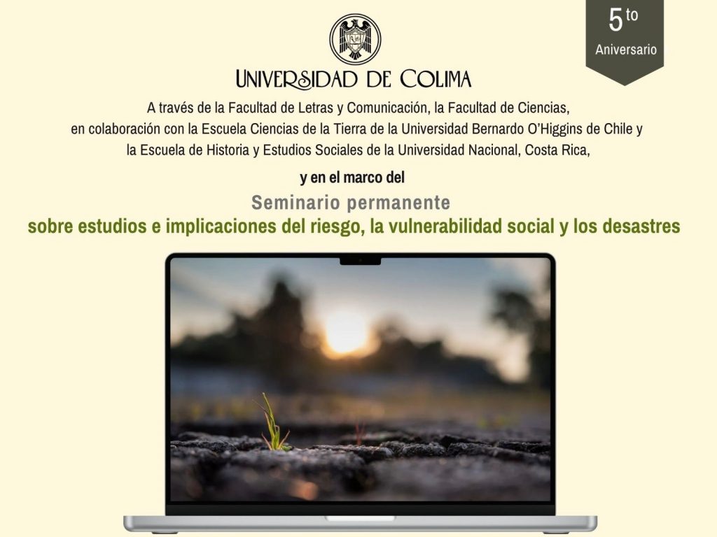 Con una sesión conmemorativa en línea, la Universidad de Colima celebró el quinto aniversario del Seminario Permanente de Estudios e Implicaciones del Riesgo, la Vulnerabilidad Social y los Desastres, coordinado por las doctoras Alicia Cuevas Muñiz y Aideé C. Arellano Ceballos, quienes destacaron el valor de ese espacio como un referente académico que promueve la reflexión crítica y multidisciplinaria sobre los desastres desde una perspectiva social y humana.