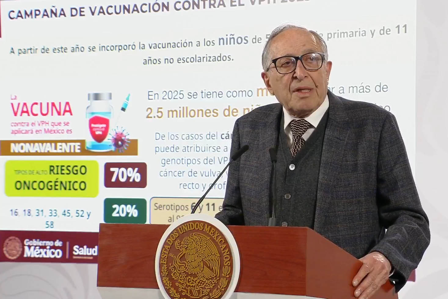 “El punto importante es que tenemos como meta vacunar a 2.5 millones de niñas y niños en México”, dijo el titular de la SSa al destacar que se usa una vacuna nonavalente.