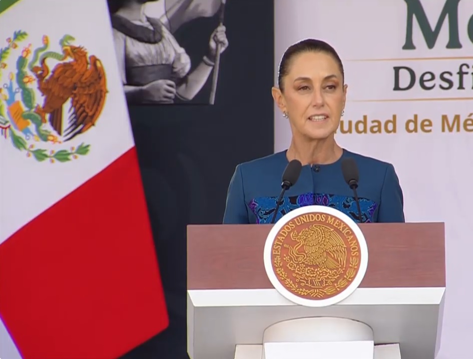 “El que convoca a una intervención extranjera se equivoca, el que piense que aliándose con el exterior tendrá fuerza se equivoca, el que cree que las mujeres somos débiles se equivoca”, apuntó durante su discurso, al encabezar el desfile militar en el Zócalo de Ciudad de México.