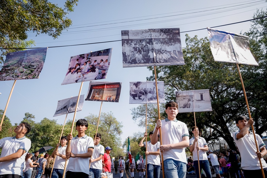 Con el carro alegórico “Revolución Universitaria”, coordinado por la Facultad de Trabajo Social, se representó la transformación educativa y social impulsada por la UdeC a lo largo de 85 años. Posteriormente, en el bloque de tablas gimnásticas, el Bachillerato 4 rindió homenaje a la Revolución con un baile folklórico; el Bachillerato 15 ejecutó una rutina con tablas de madera al ritmo de un remix revolucionario; el 34 animó con una mezcla de La Adelita y pompones, y el 33 sorprendió con una creativa representación de la Lotería Mexicana.