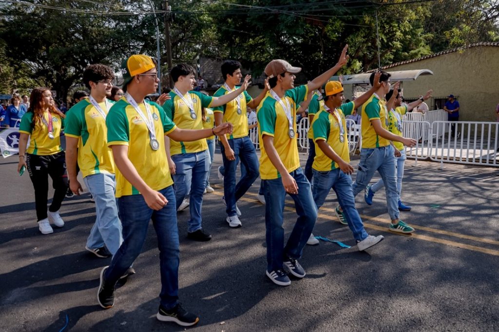 Tocó el turno de los medallistas universitarios, quienes desfilaron a bordo del nuevo camión institucional. Este bloque es un reconocimiento a los atletas que han puesto en alto el nombre de la Universidad y del estado en justas estatales, nacionales e internacionales.