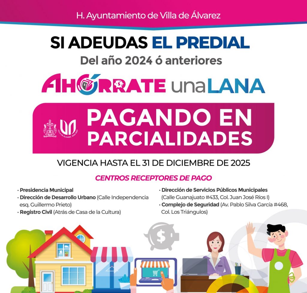 Además de esos incentivos fiscales, también el Ayuntamiento de Villa de Álvarez ofrece el pago en parcialidades del impuesto predial, esto a quienes adeuden el año 2024 o anteriores.