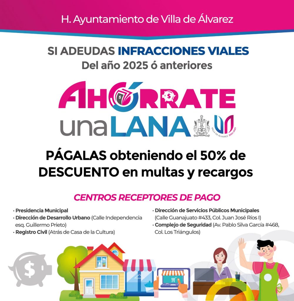 Para las personas que adeuden infracciones viales de los años 2025 y anteriores en el municipio de Villa de Álvarez, el Ayuntamiento de esta demarcación ofrece descuentos en las multas y recargos generados por la falta de pago.