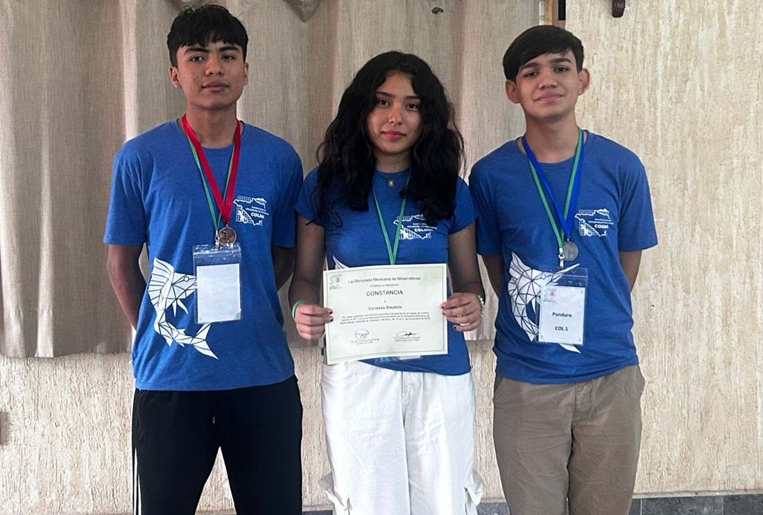 Los estudiantes Ángel Uriel Panduro Toscano (Bachillerato 8), Abner Eliasib Yáñez Ramírez (Bachillerato 5) y Vanessa Bautista (Bachillerato 18), de la Universidad de Colima (UdeC), consiguieron medalla de plata, medalla de bronce y mención honorífica, respectivamente, en el 39º Concurso Nacional Preuniversitario de la Olimpiada Mexicana de Matemáticas (OMM), consolidándose entre los mejores talentos del país.