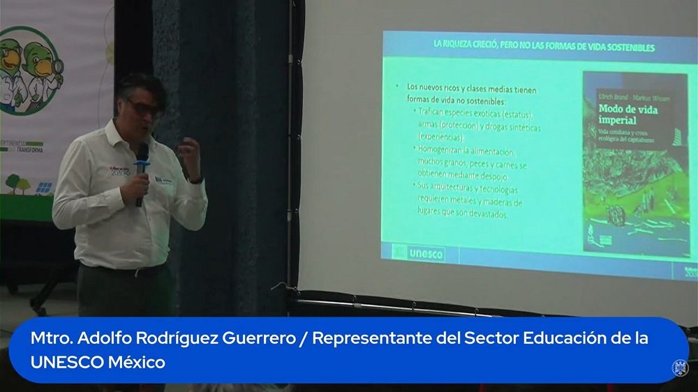 Él dictó la conferencia “Educar para la ciudadanía mundial y la sostenibilidad en la era de la IA. Una visión desde la Unesco”, con la que iniciaron las actividades del II Foro de “Buenas Prácticas Ambientales: Comunidades Universitarias Sostenibles”, en el auditorio de la Biblioteca de Ciencias de la Universidad de Colima. En este foro, bachilleratos, facultades y dependencias compartieron las prácticas que realizan en sus áreas o comunidades en temas como energía, agua, cambio climático, educación ambiental y gestión de residuos.