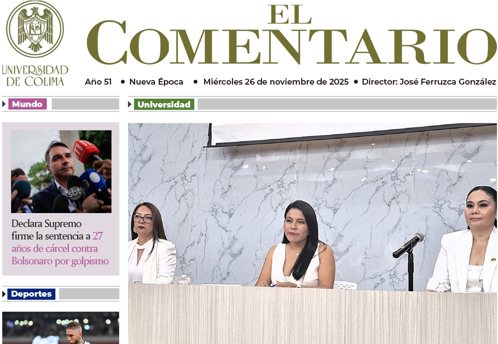 Autor Redacción Ver todas las entradas Comparte esto: Haz clic para compartir en Facebook (Se abre en una ventana nueva) Facebook Haz clic para compartir en X (Se abre en una ventana nueva) X Me gusta esto:Me gusta Cargando... Relacionado Navegación de entradas Edición del martes – 25 de noviembre 2025 – El Comentario Versión Issuu Edición del jueves – 27 de noviembre 2025 – El Comentario Versión Issuu