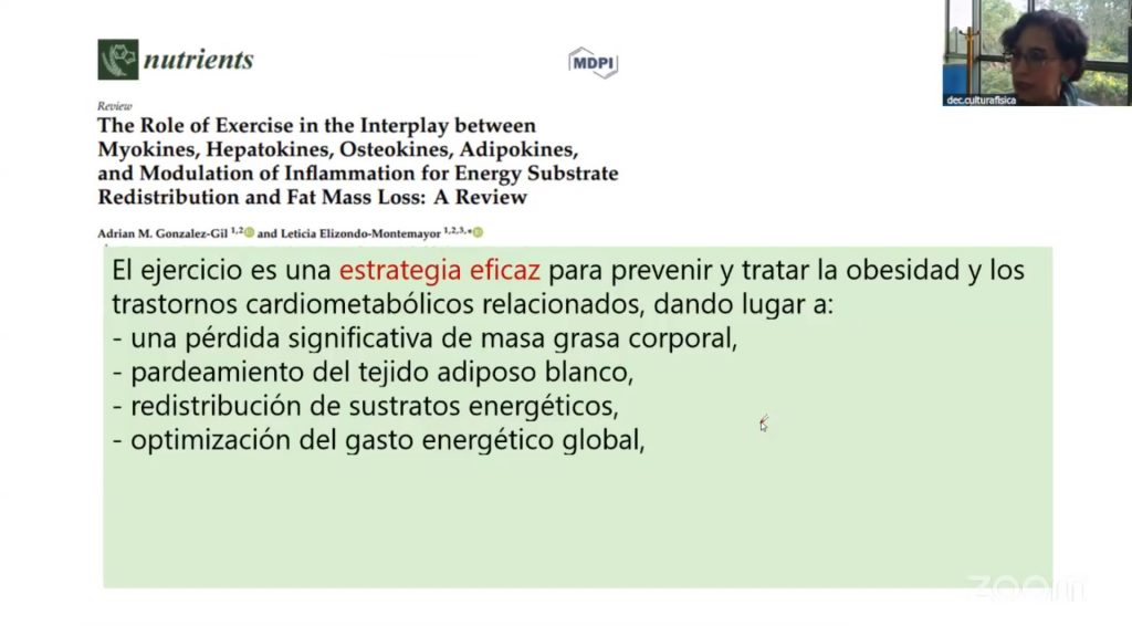 Estas mioquinas, explicó, ayudan a reducir la inflamación que produce la grasa y a mejorar el control del apetito, la saciedad, el gasto energético, la salud ósea y la resistencia a la insulina.