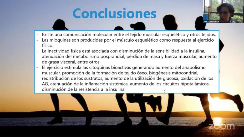 La mioquina, explicó, es una proteína que producen y liberan los músculos cuando se contraen, especialmente durante el ejercicio. Ayuda a controlar el metabolismo, contribuye al buen funcionamiento del sistema inmune, entre otros aspectos importantes para la salud de las personas, por lo que el músculo no sólo sirve para mover el cuerpo, sino que se descubrió que es un órgano endocrino, porque libera sustancias llamadas mioquinas, que se activan con ejercicios de fuerza y que influyen en el metabolismo de grasas y azúcares.
