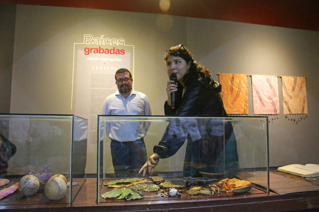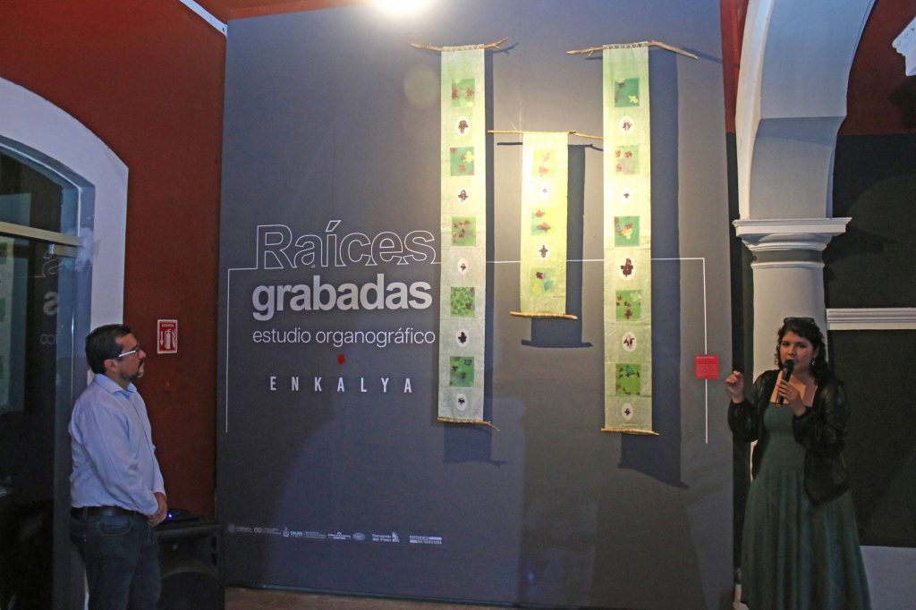 Bajo la premisa de mostrar y explorar el potencial de distintas técnicas gráficas y las posibilidades utilitarias de la materia orgánica, la joven artista colimense Enkalya presentó en el Museo Universitario “Fernando del Paso” de la Universidad de Colima, la exposición “Raíces grabadas. Estudio organográfico”, donde comparte con las y los asistentes una serie de obras que extienden paralelismos entre recursos materiales como las raíces y semillas con el desarrollo de su proceso creativo.