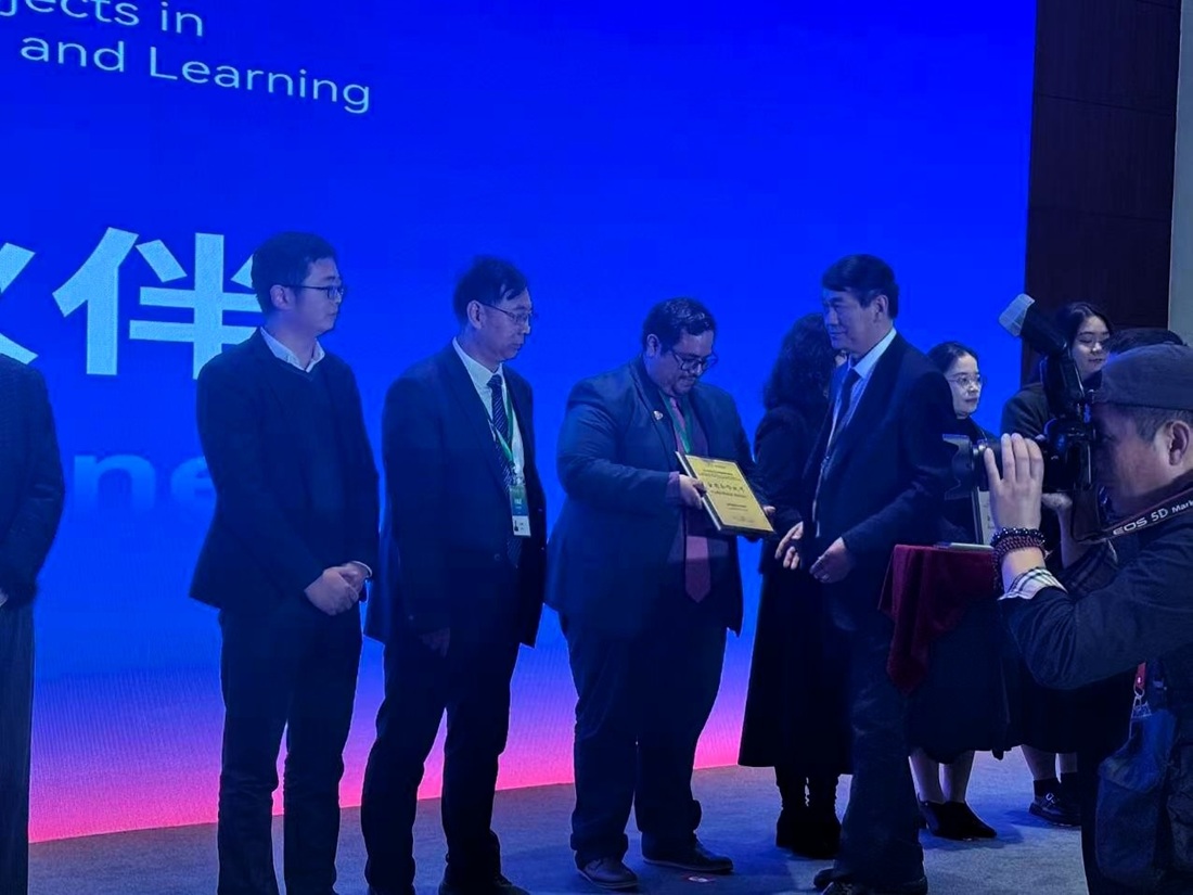 Aaron Radillo informó que en noviembre participó en la World Chinese Language Conference, organizada por la Alianza Global del Idioma Chino y Continental Han Feng Network Technology (Beijing) Co., Ltd., donde la institución recibió el premio Socio de Medalla de Oro por su destacada implementación del programa.