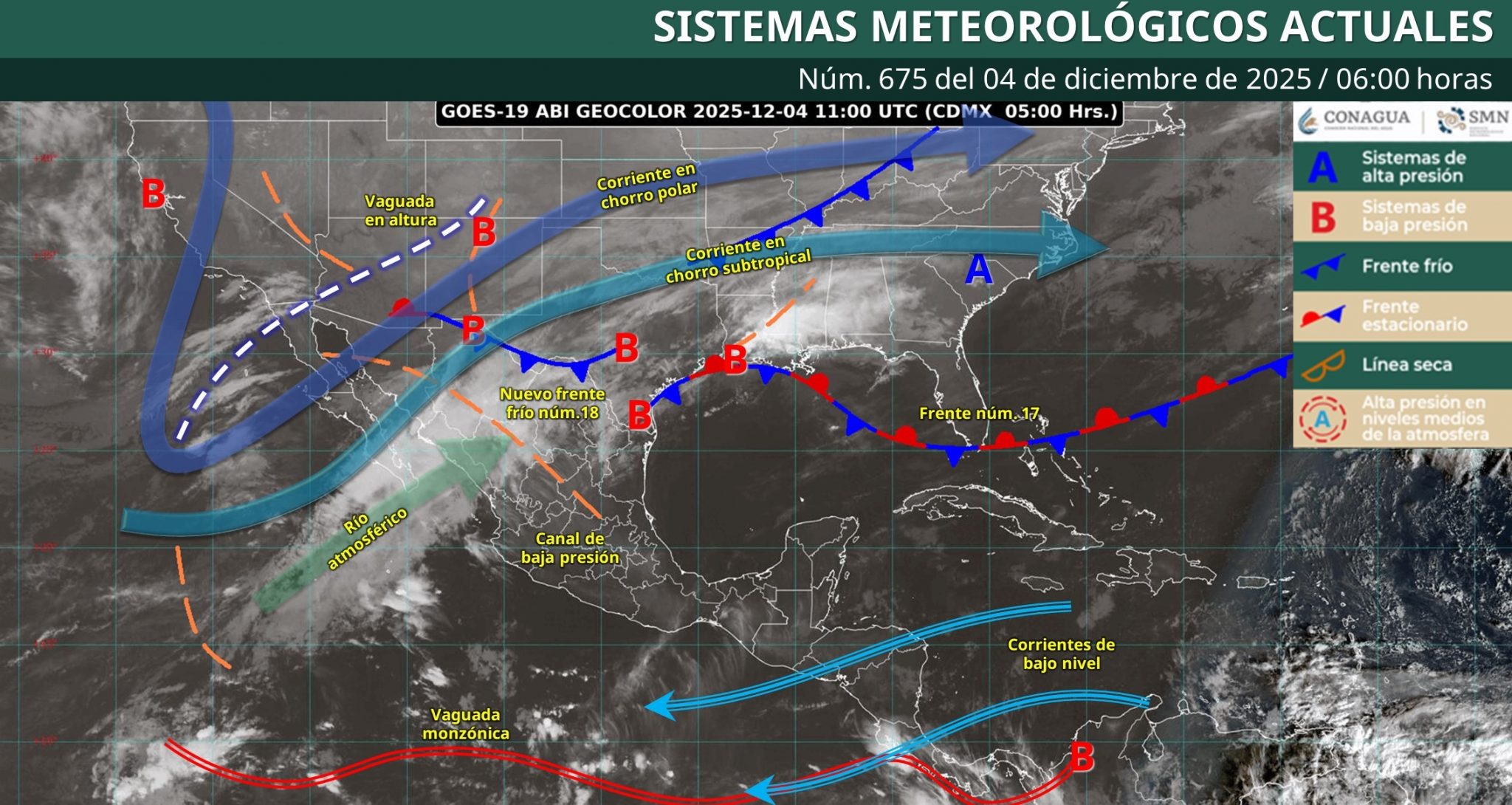 Colima amaneció este jueves 4 de diciembre con cielo medio nublado y ambiente fresco a templado, de acuerdo con el Servicio Meteorológico Nacional (SMN). Aunque el frente frío número 18 se localiza en el norte del país, su interacción con una vaguada en altura y un río atmosférico favorecerá inestabilidad en gran parte del territorio nacional, mientras que para el Pacífico centro -incluido Colima- se esperan lluvias aisladas y rachas de viento moderadas.