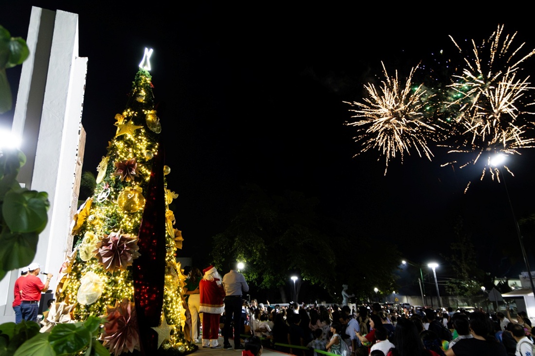 Tras el encendido del árbol monumental, la celebración continuó con un espectáculo de fuegos artificiales y la tradicional rifa de regalos, cerrando así una velada llena de alegría y espíritu navideño.