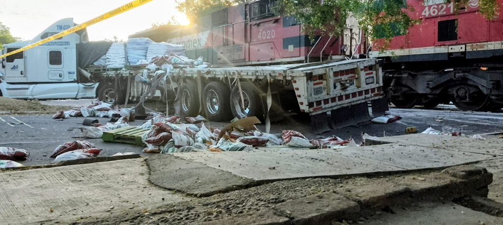 El percance ocurrió alrededor de las 7:30 de la mañana sobre la calle Acapulco, donde un tráiler, fue impactado por el tren mientras cruzaba la zona de vías.