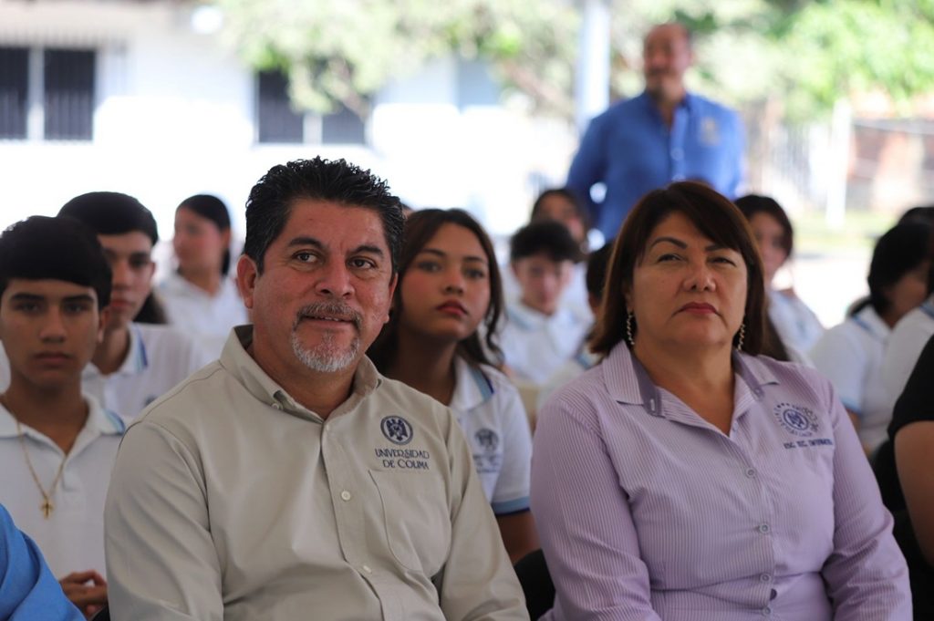 Durante su intervención, Ana María Gallardo resaltó la fuerza comunitaria y la identidad de este plantel: “Es especialmente valioso señalar que el Bachillerato 14 es una comunidad caracterizada por su alta participación estudiantil. Prueba de ello es el reciente primer lugar obtenido para representar nuevamente a Manzanillo en el Concurso del Himno Universitario, logro que alcanzan por segunda vez en un periodo muy corto. Este resultado no solo habla del talento y compromiso de las y los estudiantes, sino también del acompañamiento docente y del espíritu universitario que distingue al plantel”.