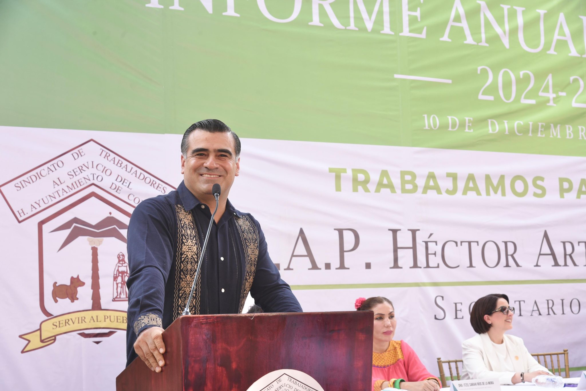 En su mensaje previo al informe anual, el secretario general del Sindicato de Trabajadores al Servicio del Ayuntamiento de Colima, Arturo León Alam, afirmó que la clase trabajadora y la población pueden tener certeza de que el Ejercicio Fiscal 2025 cerrará con orden.