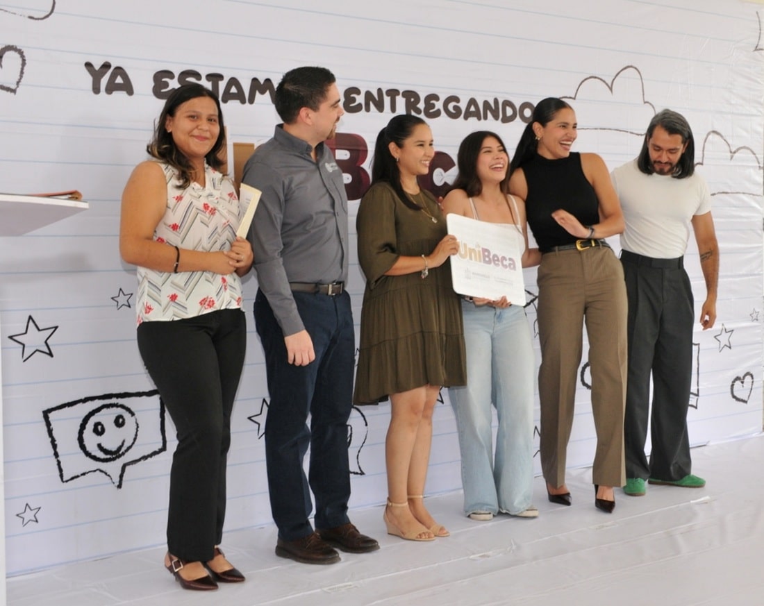 En un evento celebrado en la explanada de la Facultad de Contabilidad y Administración del Campus Central de la Universidad de Colima (UdeC), se realizó una nueva entrega de recursos del programa UniBeca, mediante el cual el Ayuntamiento de Manzanillo, encabezado por la alcaldesa Rosi Bayardo, otorga apoyos económicos a estudiantes originarios de ese municipio que cursan el nivel superior o posgrado dentro y fuera del puerto.