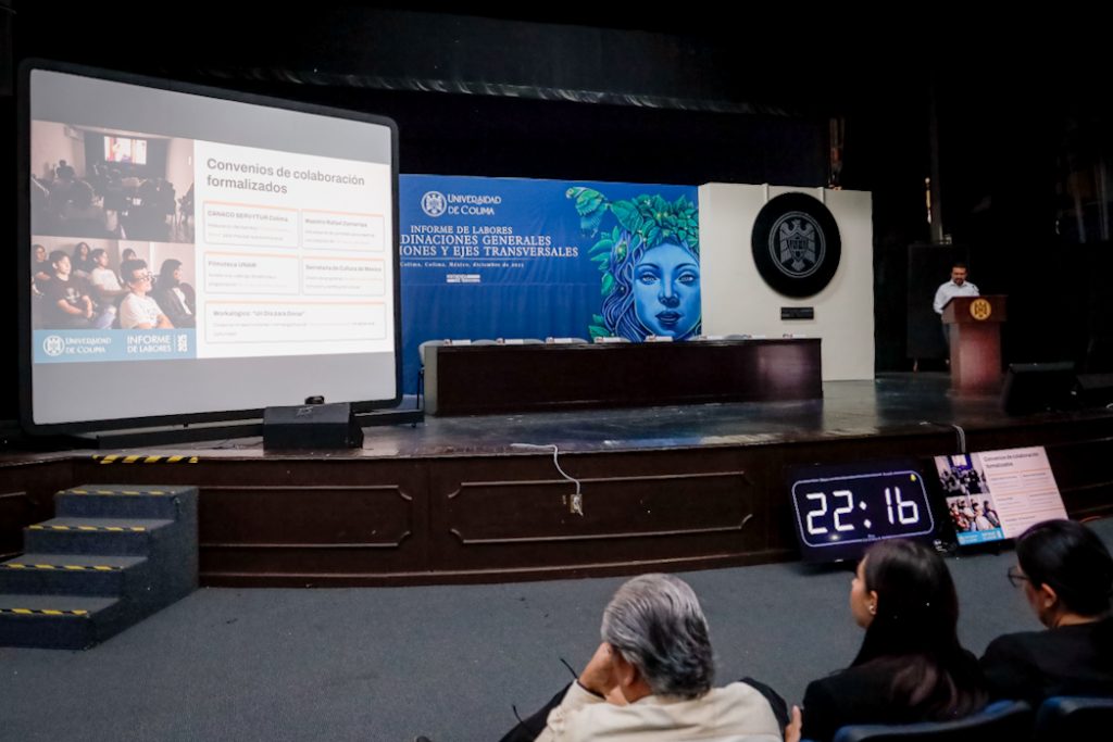 Carlos Ramírez Vuelvas, coordinador general de Extensión de la Universidad de Colima (UdeC), presentó su informe anual de labores correspondiente a 2025, en el que destacó el intenso trabajo realizado para impulsar el arte, la cultura, el deporte, la formación comunitaria y la vinculación social. Subrayó que éste fue el último informe alineado con el Plan Institucional de Desarrollo 2022–2025, lo que permitió dimensionar mejor los avances, logros y desafíos alcanzados durante este ciclo.