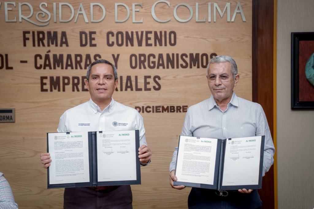 En 3 eventos por separado realizados en la Sala de Juntas de Rectoría, la Universidad de Colima (UdeC), las representaciones estatales de la Confederación Patronal de la República Mexicana (Coparmex) y la Cámara Nacional de la Industria de Restaurantes y Alimentos Condimentados (Canirac) en Colima, así como la Asociación Mexicana de la Industria del Cocotero (Ameicoco), firmaron un convenio de colaboración para generar acciones, programas, proyectos y actividades con fines académicos de investigación, culturales, deportivos, de educación continua, certificación de competencias, de servicio social y práctica profesional, innovación emprendimiento y vinculación.