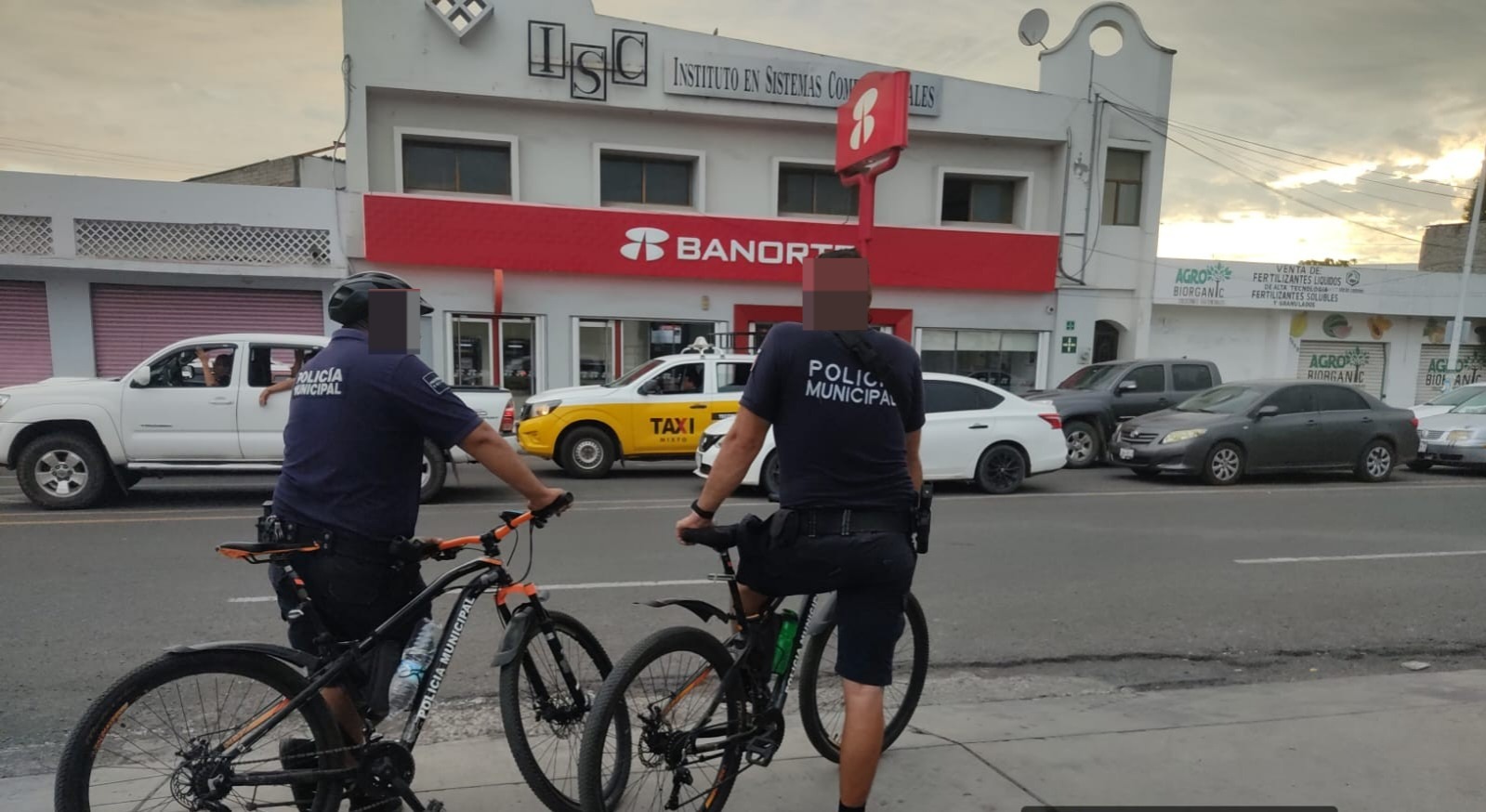 Ponce Chávez destacó que la vigilancia en el primer cuadro de la ciudad y en las áreas bancarias se mantiene de manera permanente, con la participación de elementos a pie, ciclopolicías, unidades motorizadas y el apoyo de la Policía Vial.