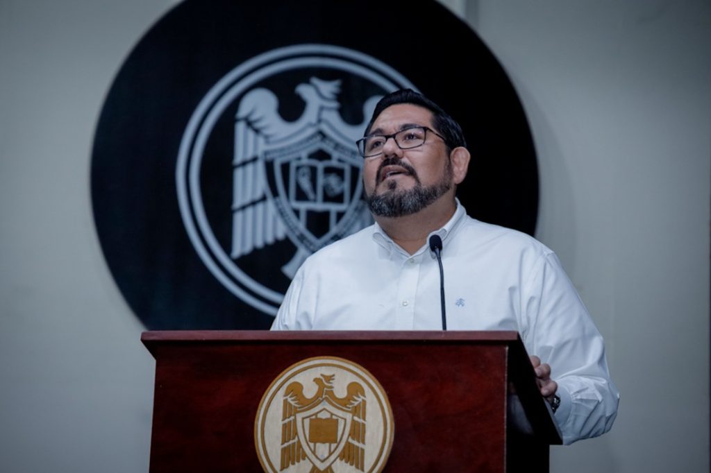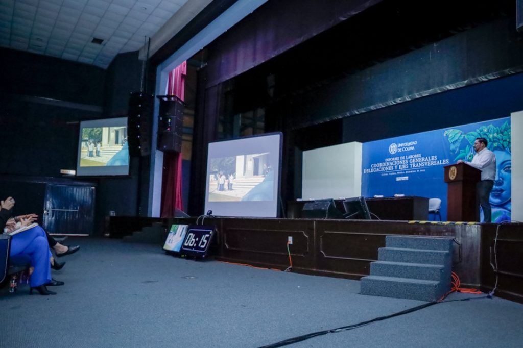 Como parte de la segunda jornada de rendición de cuentas de las delegaciones, dependencias, coordinaciones y ejes transversales, Joel Nino Jr., secretario general de la Universidad de Colima (UdeC), rindió su informe de labores en el Paraninfo Universitario, ante su equipo de trabajo y funcionarias y funcionarios de la institución, encabezados por Christian Jorge Torres Ortiz Zermeño, Rector de esta Casa de Estudios.