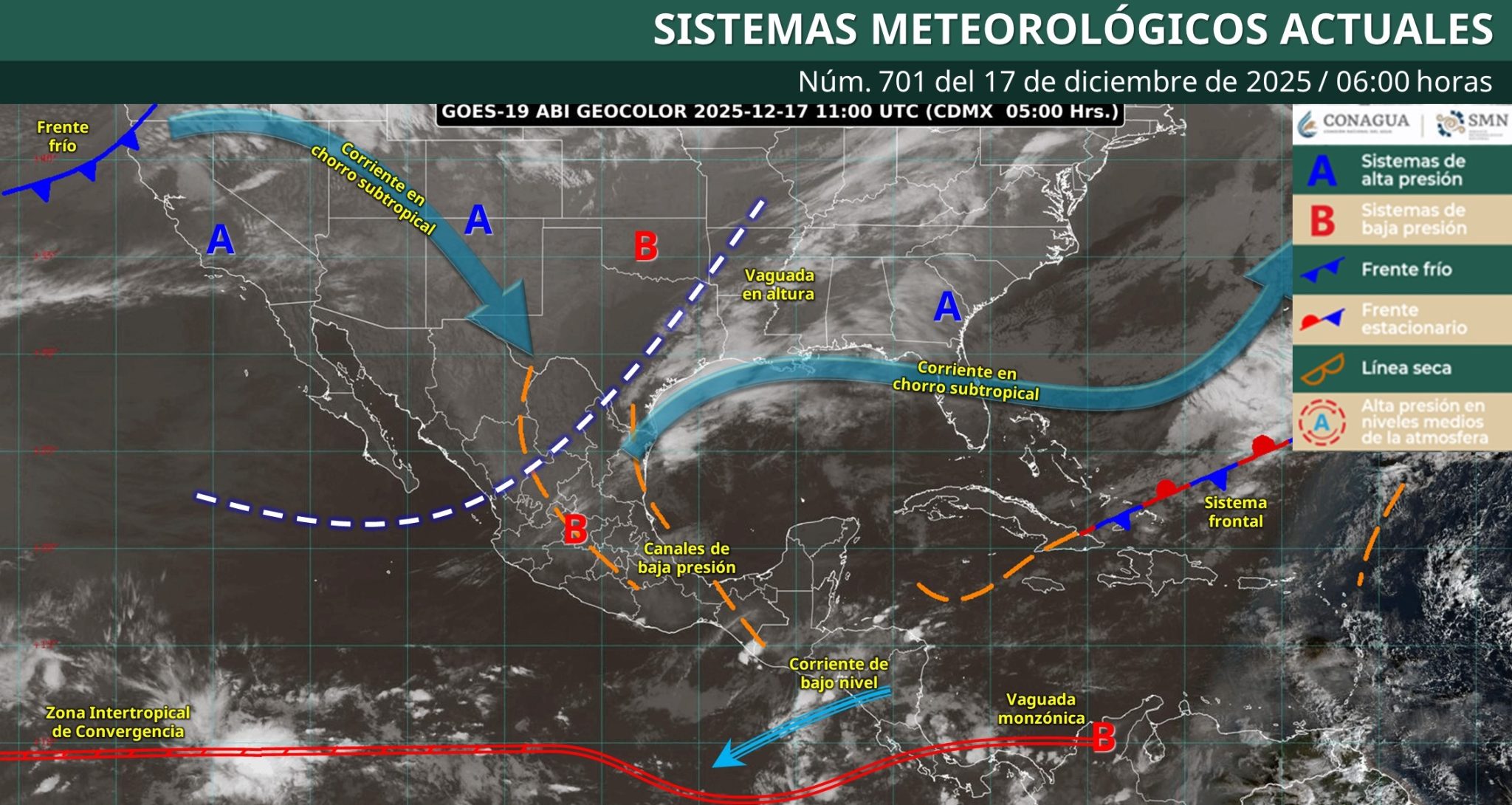 Aunque a nivel nacional canales de baja presión y una vaguada en altura favorecerán lluvias y chubascos en diversas regiones del país, en Colima no se esperan precipitaciones, a diferencia de entidades vecinas como Michoacán, donde sí podrían presentarse chubascos acompañados de descargas eléctricas.